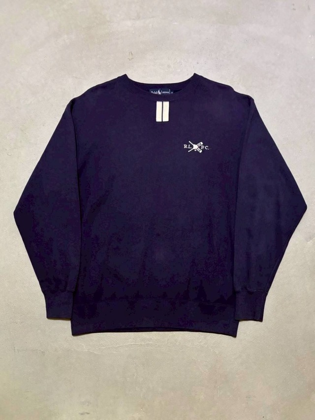 こちらもラルフのスウェット。 ご覧の通り首もとにチョコチンがついており、また色もナス紺に近いネイビー。 特にチョコチンはTシャツに付くような印象なので、スウェットについているのが異質な感じがして面白いです。 諸々、ヴィンテージラバーが反応しそうなディテールですね。 ポロチノなんかと適当に合わせても様になる、さすがラルフといったアイテムです。 ◼️サイズ 表記:M 着丈:67cm 身幅:58cm 裄丈:85.3cm