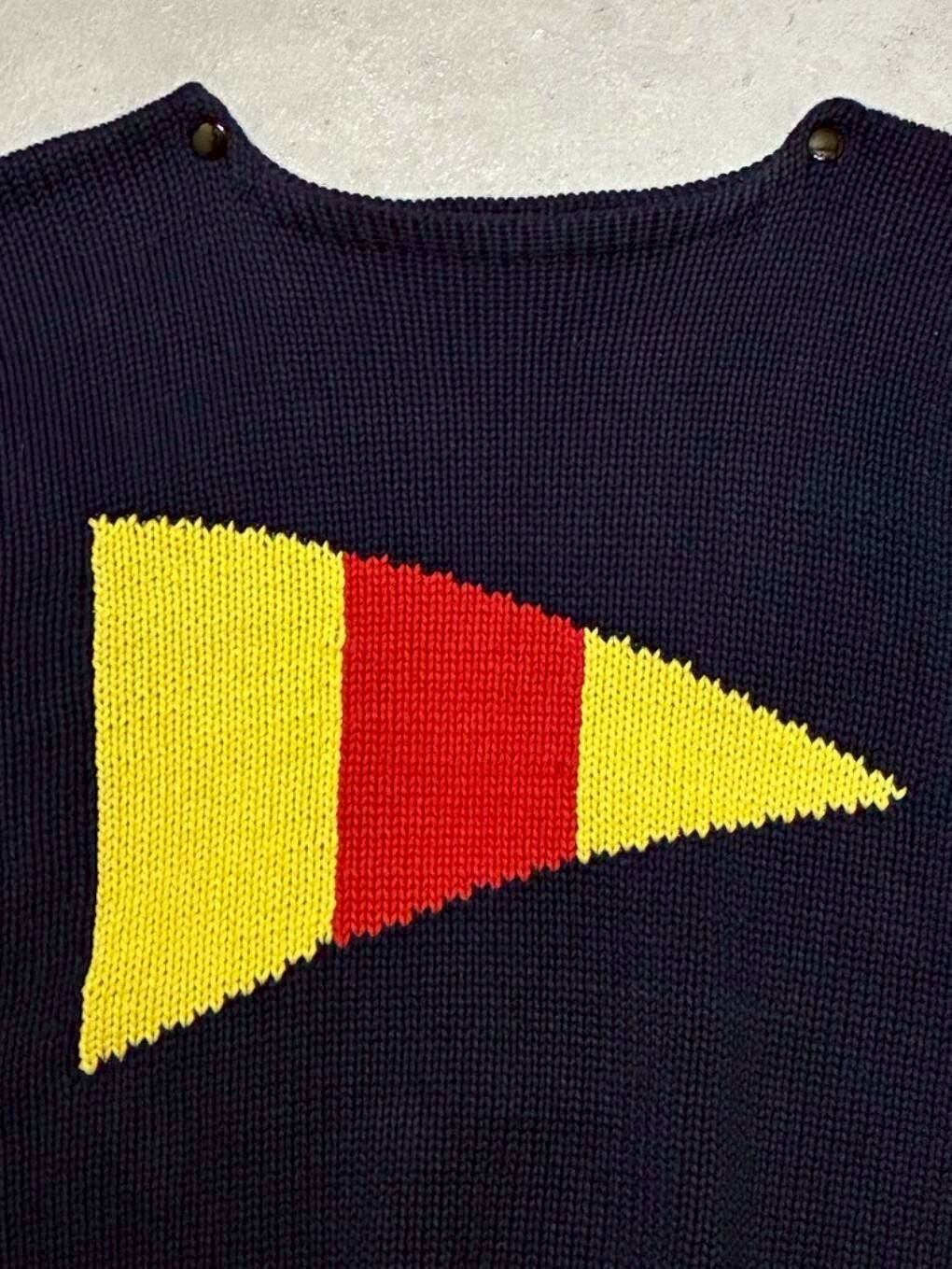 ラルフローレンのニットで旗モチーフのものがあるのですが、恐らくその類いだと思います。