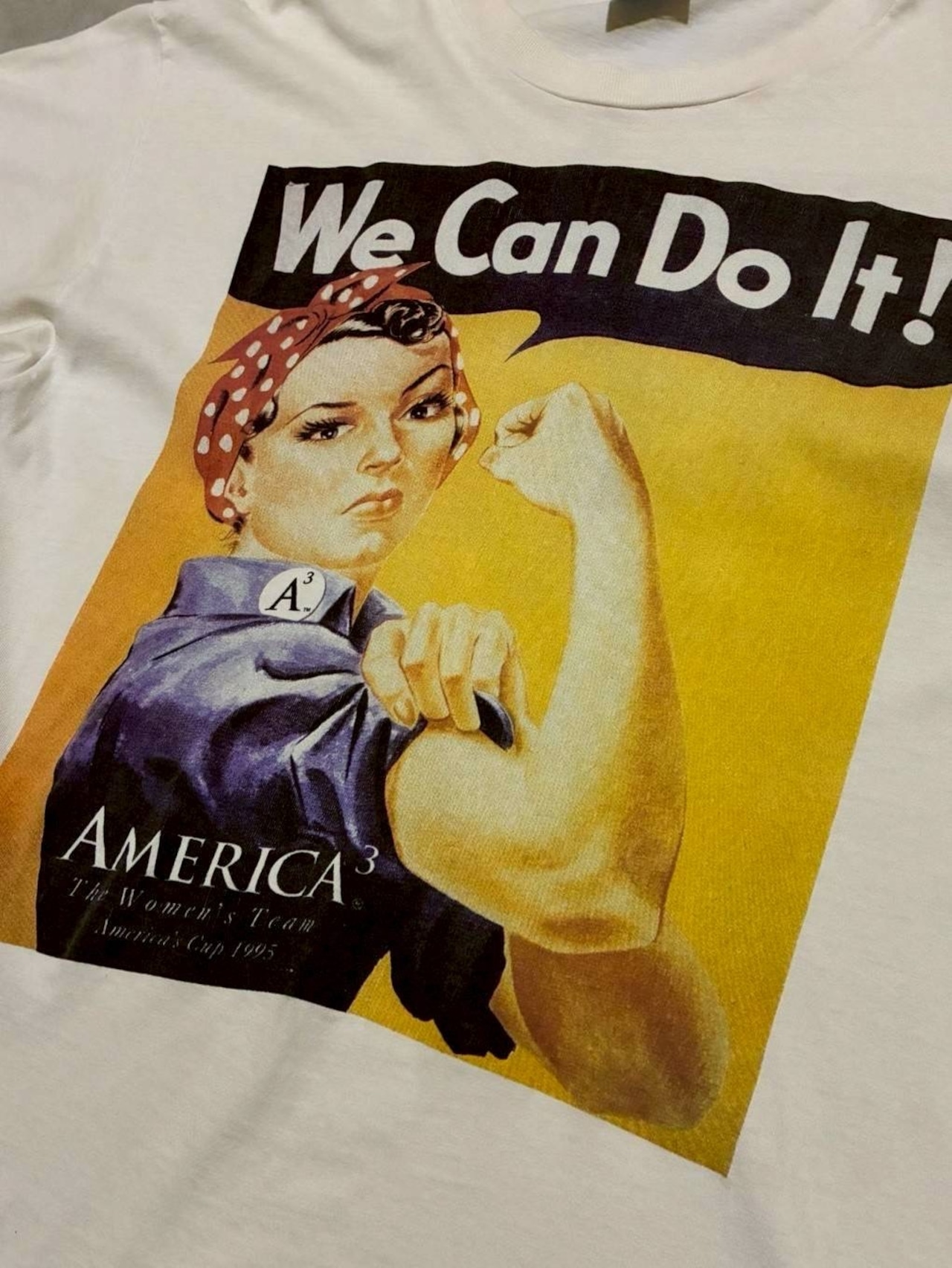 ここまでの話でお気付きの方も多いと思いますが、Rosie the RiveterとA³は、パワフルで自立的な女性という文脈で非常に親和性が高く、チームのTシャツに使用されたというわけです。